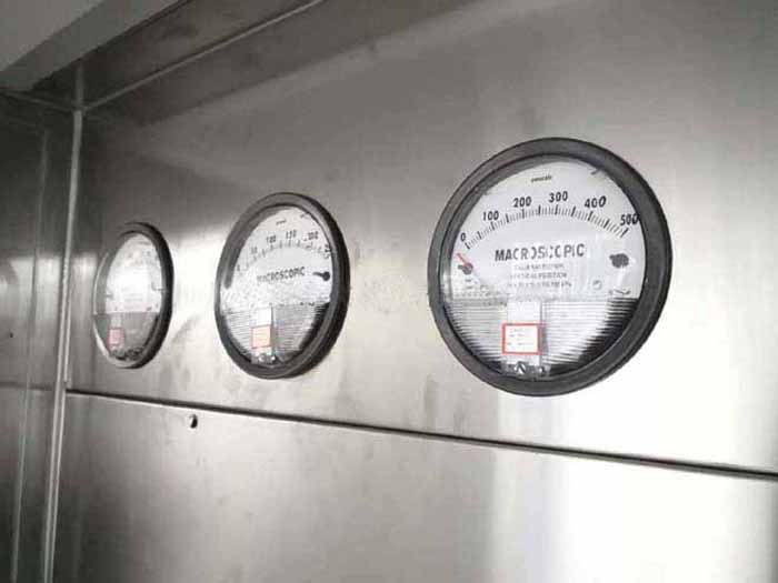 在其旁有壓差計,測試過濾器的阻力在送風箱體的內(nèi)部還有排風調(diào)節(jié)板,可以調(diào)節(jié)設備的排風量在合理的范圍內(nèi)(設備安裝就位后,由專業(yè)人員設試,請勿擅自調(diào)整)。