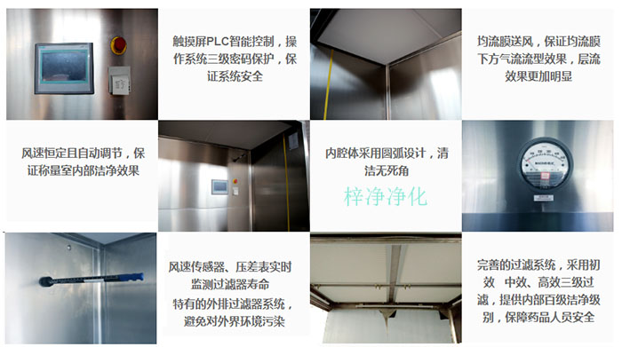 負壓稱量工作臺在所有氣流均經(jīng)過高效過濾器處理,所以送風,排風均不帶殘余粉塵,避免了二次污染。負壓稱量臺由于在工作區(qū)域形成穩(wěn)定的單向流,在此區(qū)域中散發(fā)的粉塵,會在單向氣流的影響下,隨著氣流而被初、中效過濾器所捕集。設備帶有10%的排風,從而形成相對與外部環(huán)境的負壓,從一定程度上保證了此區(qū)域內(nèi)的粉塵不會擴散至室外,起到保護外部環(huán)境的作用。
