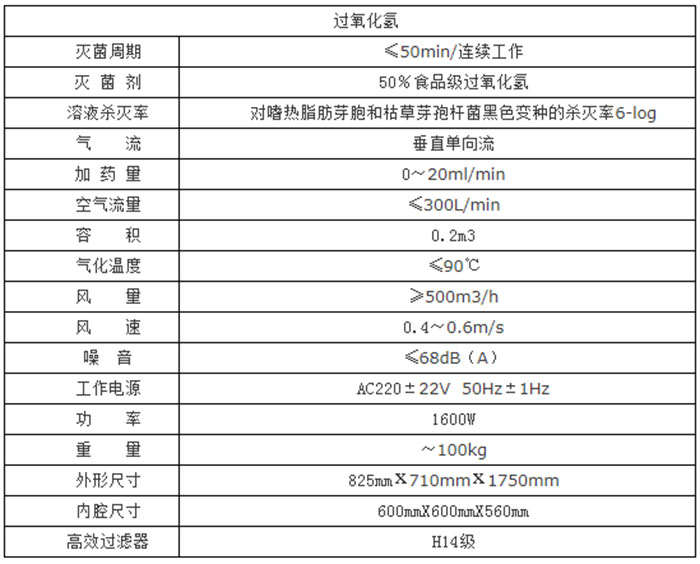 無菌傳遞艙技術(shù)指標:
